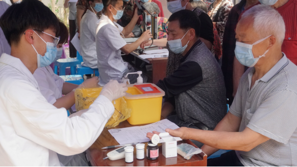 在健康义诊活动中,师生结合社区居民日常身体健康状况,就慢性病咨询与管理,血压、血糖检测,心肺复苏指导、视力检查等为居民服务,向居民传播健康知识,引导居民养成良好的健康习惯。