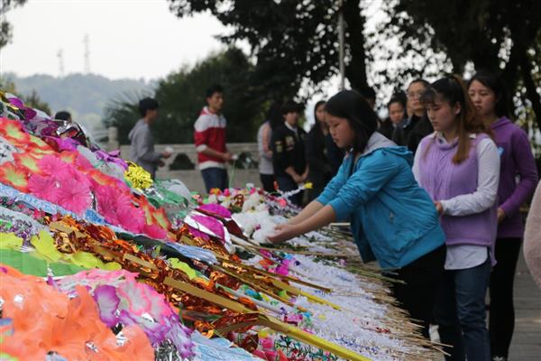 在庄严肃穆的人民英雄纪念碑前,师生们举行了简短而又隆重的悼念仪式。大家怀着崇敬的心情向纪念碑敬献了亲手折的手绢花,并举行了重温入党誓词活动,“我志愿加入中国共产党……”, 铮铮的誓言响彻烈士陵园的上空,“人民英雄永垂不朽”八个大字在阳光的照耀下显得更加夺目……