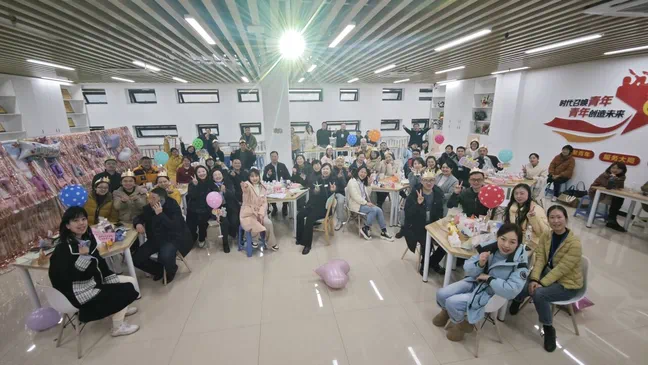 在轻快的《相亲相爱一家人》歌声里,“师韵流芳 同向同行”教职工集体生日会拉开帷幕。老师们笑着加入游戏互动,玩“猜猜他是谁”时,AI元素让大家新奇又兴奋。千纸鹤承载祝愿,祝福视频满含心意。当烛光亮起,全体共唱生日歌,寿星们眼眶微红。寿星代表上台,声音带着感动,感谢学校与同事,在这儿,大家是携手奋进的伙伴,更是温暖的家人。