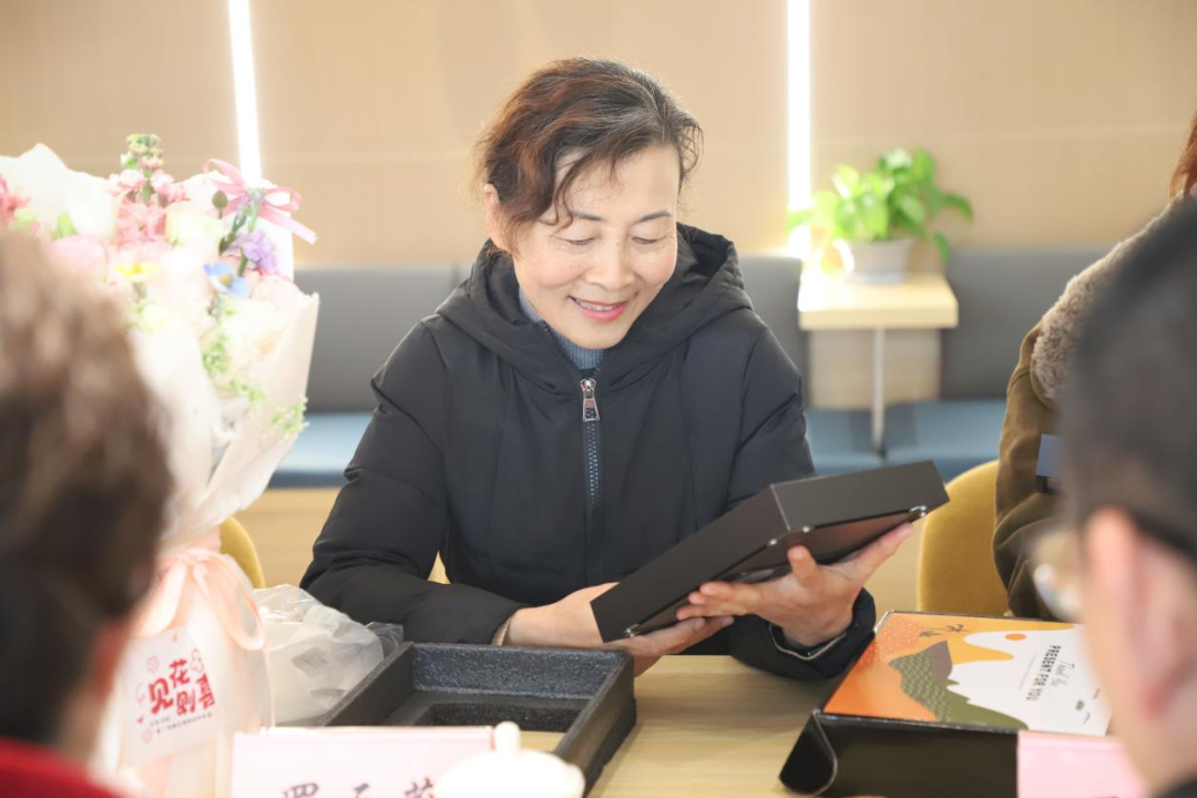 党委书记黄晓春、党委副书记文铭生、副校长、工会主席熊骥代表学校,为三位老师逐一赠送荣休纪念品。每一份礼物,都承载着学校对她们几十年如一日奉献的深深谢意,更是认可与长久的惦念,愿它能见证我们跨越岁月的情谊。