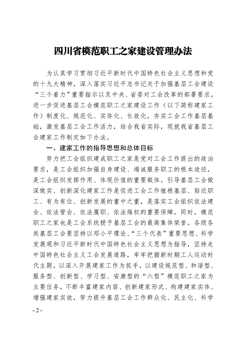 关于印发《四川省模范职工之家建设管理办法》的通知