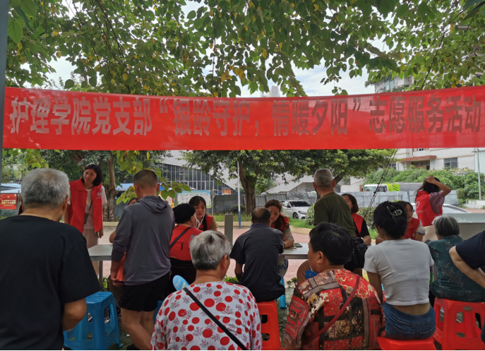 为积极发挥专业特长服务地方群众生命健康,830日,护理学院党支部在鸿鹤坝社区开展银龄守护·情暖夕阳”关爱老人志愿服务活动为社区老人送去关爱和温暖。