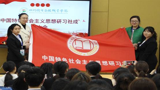 最后,以隆重而庄严的授旗仪式结束此次大会,秦丹老师和唐虹老师把旗帜递交给社团的两位社长,并宣布中国特色社会主义思想研习社正式成立。社旗代表着责任与义务,同时也是研习社奋斗的激励。在未来的日子里,研习社将以“集思广益,互助互学,提高能力”为宗旨,成为护理系与学院思政教育、学生党建工作的优良阵地。
