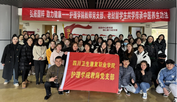 护理学院教师党支部结合医学教育特点,以传承“中医养生功法”为主题,组织教师党员与老挝留学生共学八段锦,在传播中华优秀文化的同时,达到强身健体、愉悦身心的效果,筑牢全民健康观念。