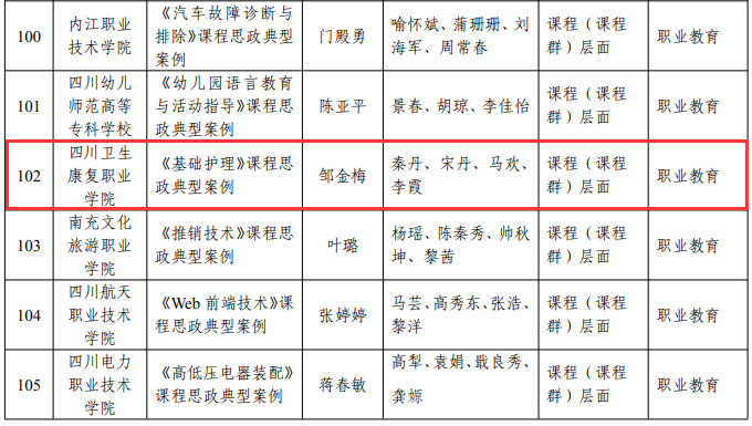 近日,四川省教育厅公布了《第二批高等学校课程思政标杆院(系)和典型案例拟认定名单》,护理学院课程思政建设工作取得最新突破,拟被认定为高等学校课程思政标杆院(系)、高等学校课程思政典型案例。
