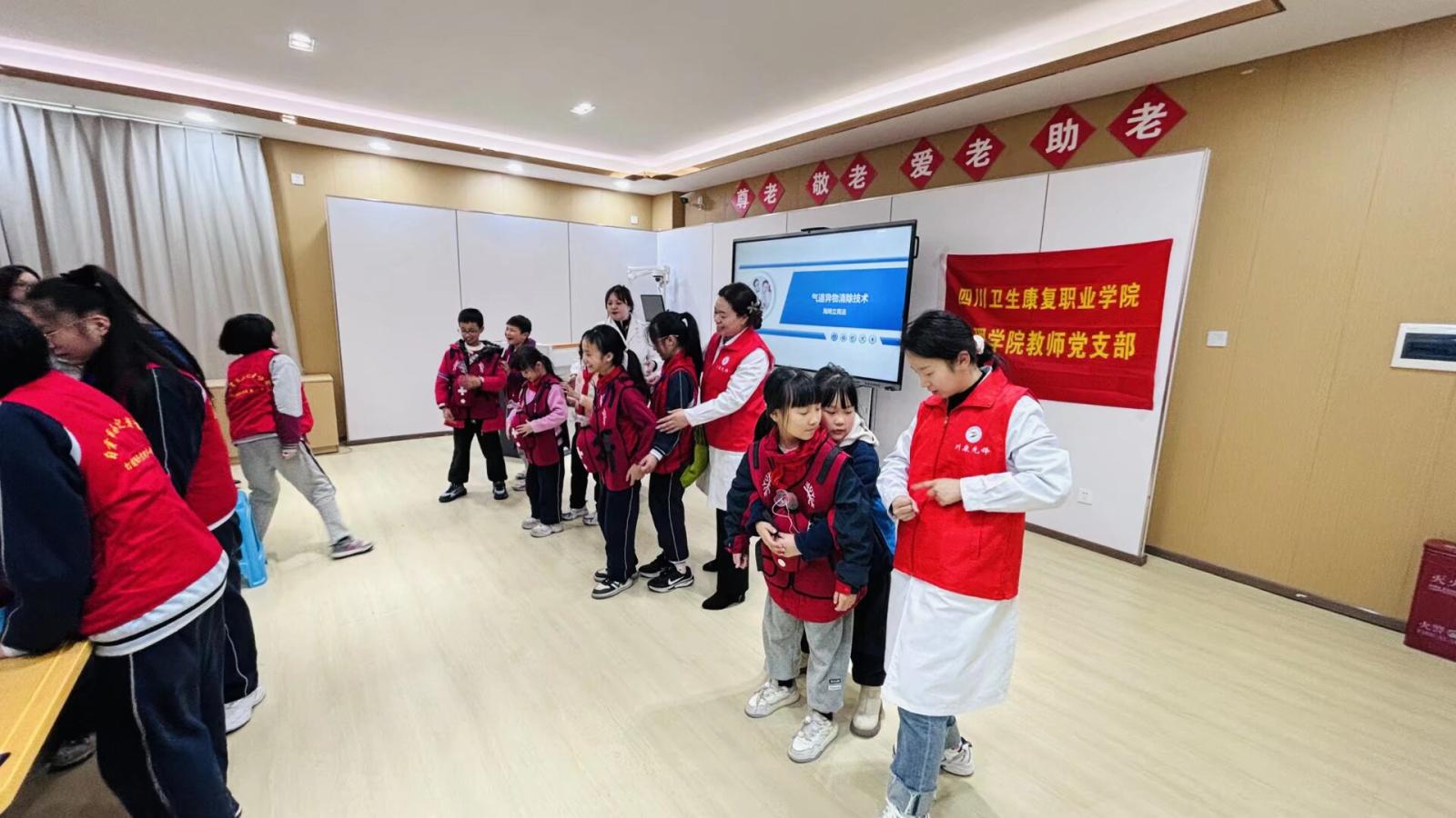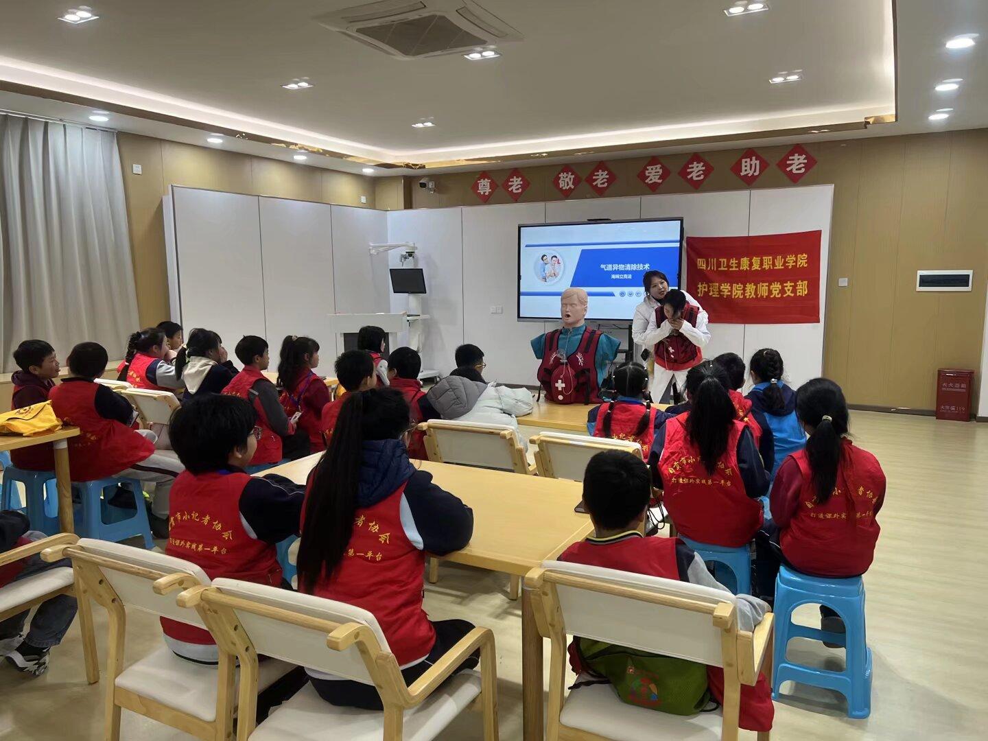 本本次活动是护理学院教师党支部深入学习贯彻习近平总书记关于健康中国建设的重要论述精神。,将政治功能与服务功能有机统一的具体实践。支部始终坚持将党建工作与业务工作同谋划、同部署,把服务地方、服务青少年健康成长作为发挥党员先锋模范作用的重要平台。此次面向青少年群体开展急救培训,旨在从小树立“人人学急救,急救为人人”的安全理念,将党的关怀和专业的知识送到青少年身边,以实际行动践行“人民至上、生命至上”的崇高理念,彰显了党支部服务社会、服务人民的政治本色和责任担当。