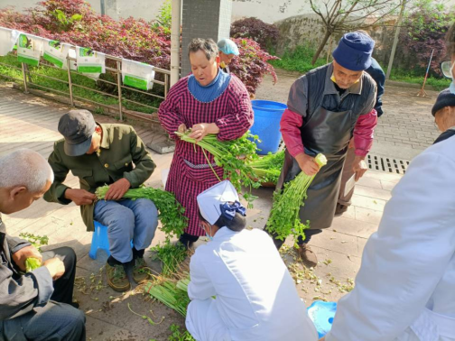 社员在帮助老人们准备午饭
