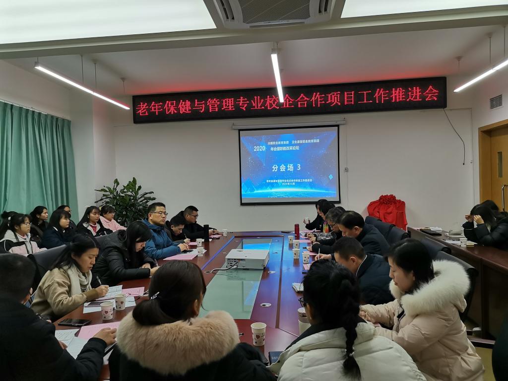 2020年12月30日,老年保健与管理专业校企合作项目工作推进会在护理系3-B209顺利举行。学院黄昌平副院长、教务处段河军副处长、护理系邹金梅,康源集团左彤副经理、梁红部长,以及川南地区职业学校代表、养老行业企业代表、学生代表等70余人参加会议,会议由行办李琴主任主持。