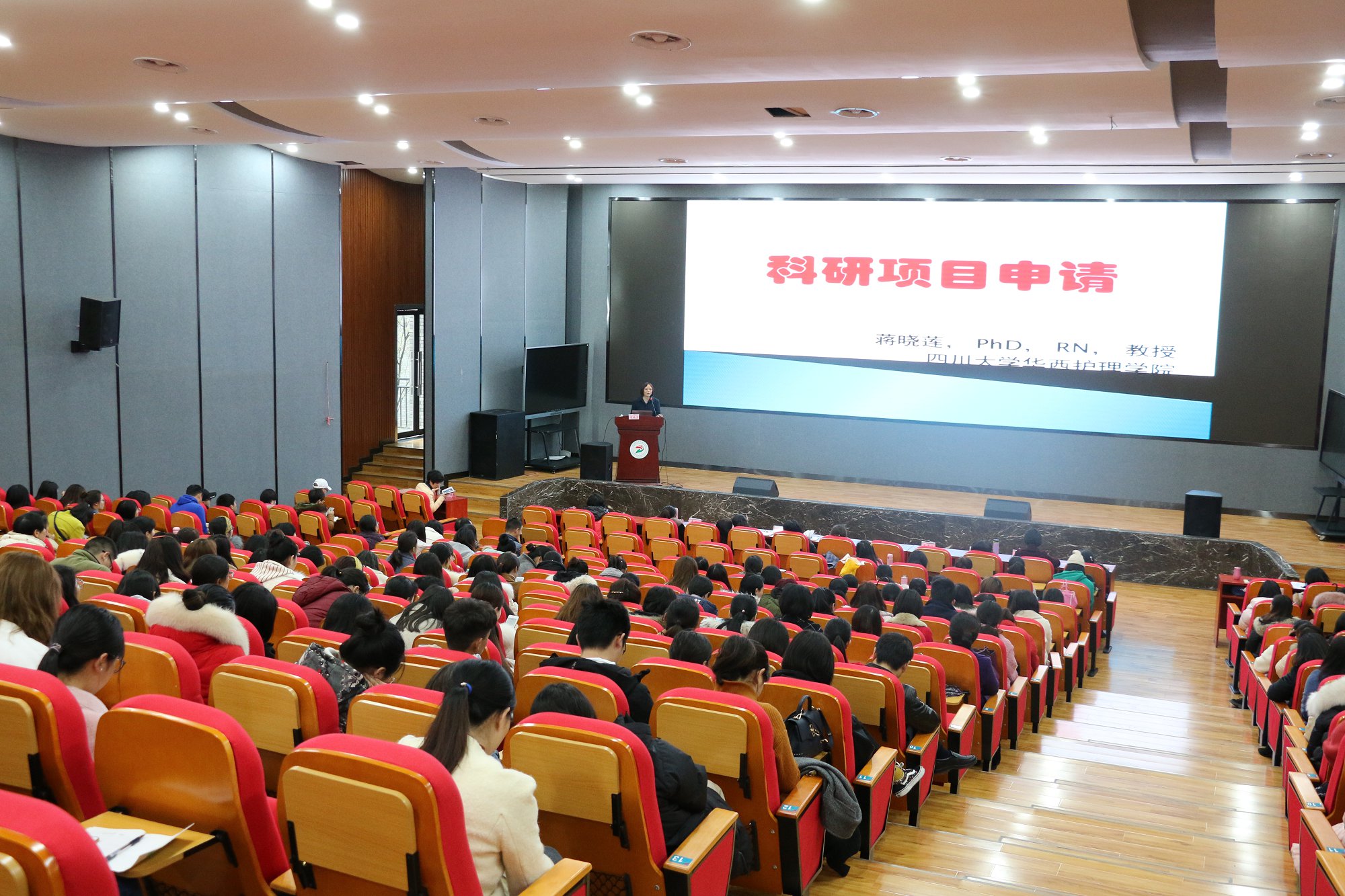 为进一步提升我市护理教师和护理人员的科研水平,3月7日,taptap点点体育护理系联手自贡市护理学会教育专委会,在我院3号楼C209学术报告厅举行学术讲座《护理科研的申报》。四川大学华西医院蒋晓莲教授担任主讲。我市及周边地区共13 家医疗机构及我院教师近300余人参加此次讲座。