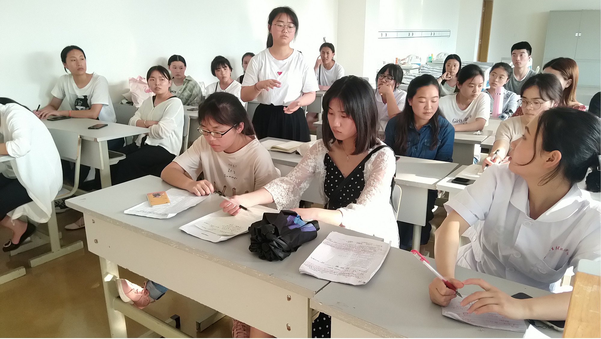 护理实训室主任黄永先老师针对同学们提出的问题进行详细、全面、耐心的解答,并表示接下来会加强实训室管理,更好地为同学们服务,同时也希望同学们爱护实训室器材,利用好我们实训教学资源。