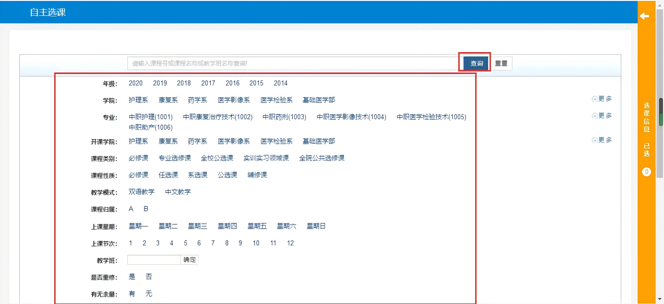 5、选课人数少于30人的课程将停开。停开课程的信息将在所有年级第一轮选课结束后学院官网-护理学院二级页面停、改选通知内公布(9月23日),该课程选课数据将被清空,选择该课程学生可在规定时间内(第二轮选课)改选其他课程容量未满的课程学习。