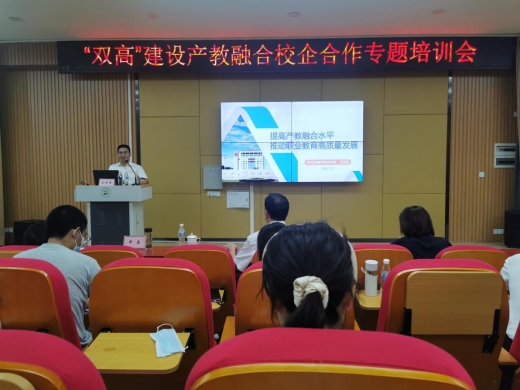 王教授指出,高水平职业教育需要高水平产教融合支撑。他从职业教育的主要矛盾和本质出发,深入浅出的分析校企合作、产学合作、工学结合、产教融合等相关概念,生动的展示产教融合校企合作路径。其中,他结合兄弟院校产教融合案例分析,对产教融合平台、人才培养与技术创新平台、技术技能平台的实施路径作了详细阐述,让大家深刻认识到产教融合、校企合作是职业教育高质量发展的核心载体,大家纷纷表示此次培训既有很强的理论指导意义和实践操作指导价值。