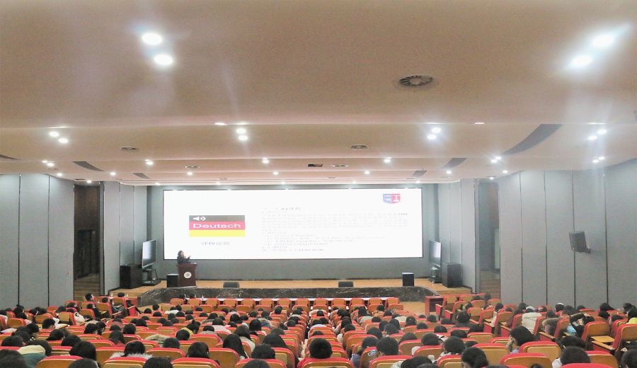 而后,成都翻译协会的朱老师就德语学习、考级、课程安排给在场同学进行了普及,朱老师介绍从零基础达到B1水平需要学习大约6个月的课程。赴德就业要求的B1水平相当于德语的中级水平,具体要求应试者能掌握3000左右的词汇量及短语积累,能写500词左右的文章,可以在纯德语环境进行日常对话交流,流利阅读简单文章,准确表达自己的需求。