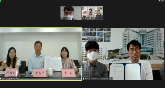 5月26日,taptap点点与韩国东明大学线上签约仪式在1教A402顺利举行。学校校长黄昌平、行政办公室主任李琴、护理学院学生科科长刘珏衫、东明大学副院长权重洛、艺术设计系教授兼教育院主管王东等出席了签约仪式。