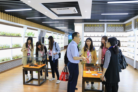 台湾大仁科技大学师生一行参观了药学系GMP模拟车间、中药标本馆、模拟药房等教学实训基地。在药学专业学生创新创业基地——药香堂,我院学生介绍了同学们将专业知识运用于创业实践,开发了中药香囊等系列产品。我院学生还展示了剪纸、手工花制作等技能,到访学生积极参与体验。两校学生还围绕专业课程学习、二课堂活动开展、传统节日文化等展开了深入交流,现场气氛轻松活跃。