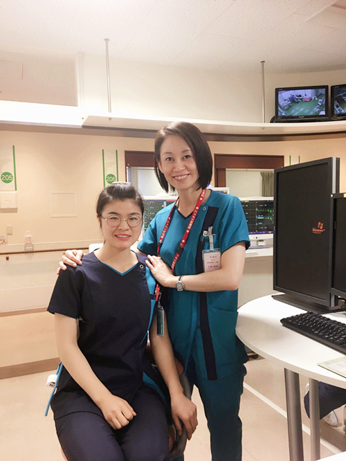 第一个月是“一对一”培训,从如何与患者交流到打针输液,带教老师会手把手地教。因为中日医疗教育、文化等等的不同,工作细节上有较大差异。我的带教老师每天要带着我做工作,还要和我一起进行工作反思、撰写反思报告、参加小组会议。她要求我必须独立分析和思考:病人现在的状况是什么、可能怎么样发展?该如何护理?护理方案有几种,对病人家人的护理计划是什么?和我在国内实习强调操作完全不同。说实在的,整个过程耗时又痛苦,但是却能学到很多东西。“必须成为独当一面的护士”是医院培训我们的目标。