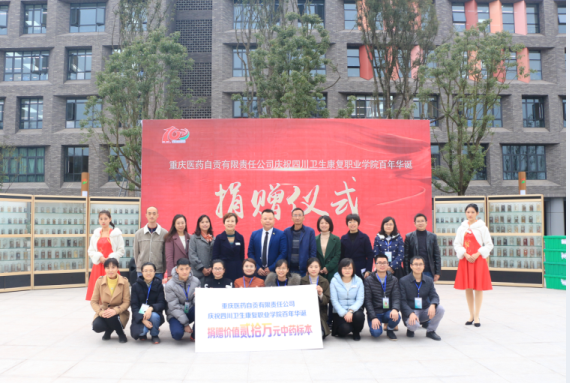 百年华诞,百年共庆。不忘初心,砥砺前行!值此校庆之际,重庆医药自贡有限责任公司向学院的捐赠,既是对学院百年华诞的美好祝福,也是对学院发展建设的有力支持。