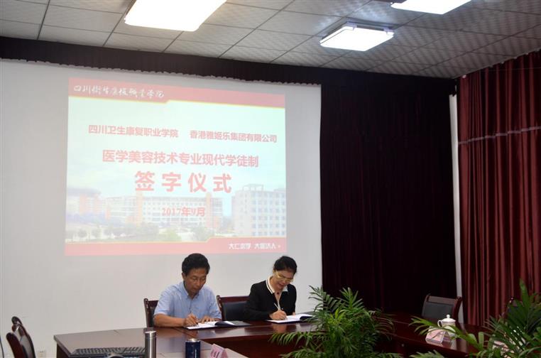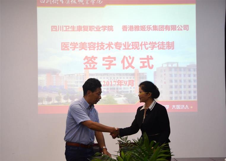 罗天蔚副院长出席并主持此次签约仪式。曾晓奇院长向来宾介绍了自贡及学院的基本情况,并就合作过程中可能出现的问题,提出了建设性意见,表示愿意以学生更好就业为目的,同香港雅姬乐集团有限公司在促进学生对行业认知、扎实基本功、对行业高端仪器使用等方面深化合作,为培养医学美容专业高端人才,促进行业发展共同努力。
