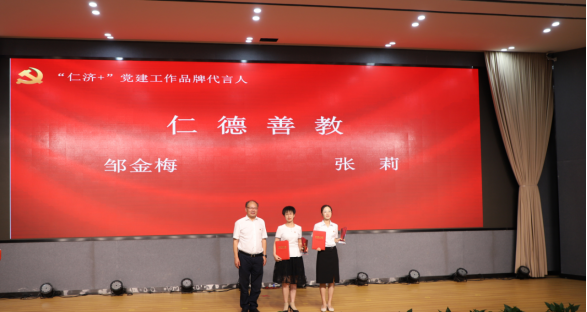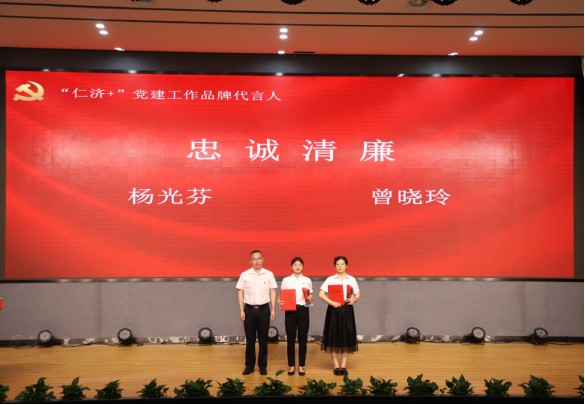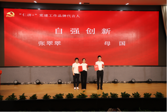 今年,学院举办了首届党建工作品牌代言人评选活动,在学校和附属医院2037名党员中评选出了10名政治过硬、业绩突出、特色鲜明的党建工作品牌代言人。大会为10名“仁济+”党建工作品牌代言人进行了颁奖。“仁德善教”党建工作品牌代表邹金梅、“济世精术”党建工作品牌代表陈云波、“自强创新”党建工作品牌代表张翠翠、“担当奉献”党建工作品牌代表江燎、“忠诚清廉”党建工作品牌代表杨光芬先后分享了个人先进事迹。他们守初心、担使命的事迹深深打动了在座每一位党员,值得广大党员习。
