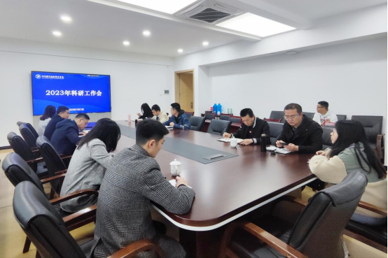 伍勇就各二级学院2022年度科研工作情况作了数据分析与情况通报。他指出,2023年学校科研工作要始终锚定双高建设任务,统筹谋划科研制度建设、科研平台管理、科研团队培育等重点工作,着力争取在高层次科研项目、科研成果奖项、横向科研经费等方面取得进一步突破。