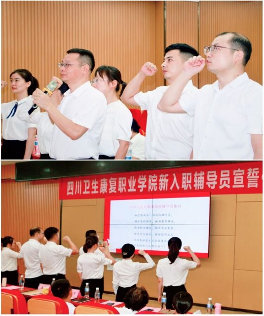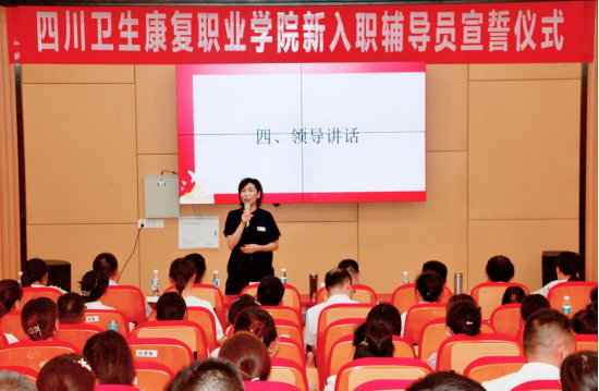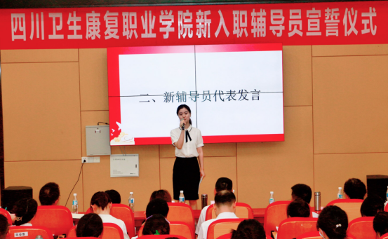 仪式上,新入职辅导员进行了庄严宣誓。新入职辅导员代表刘御珂结合岗前培训,表达了牢记誓言,当好学生健康成长知心朋友和人生导师的决心。康复学院学生科科长卫琛以《让教育带着温度落地》为题,结合暑期参加全国高职院校学生工作高质量发展研修班的情况,分享了工作经验和心得体会。