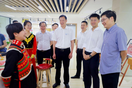 刘向鸿一行来到学校民族团结进步爱国主义教育基地,实地调研了四川省民族事业发展专项资金项目建设、运行、效用发挥情况,并与基地现场制作扎染、剪纸、秸秆画等地方非物质文化遗产的民族学生亲切交流,了解他们的学习、生活情况。刘向鸿鼓励学生们在文化交融中团结互助,既要传承好中华优秀传统文化,也要勇于开拓创新,做中华民族伟大复兴的时代新人。