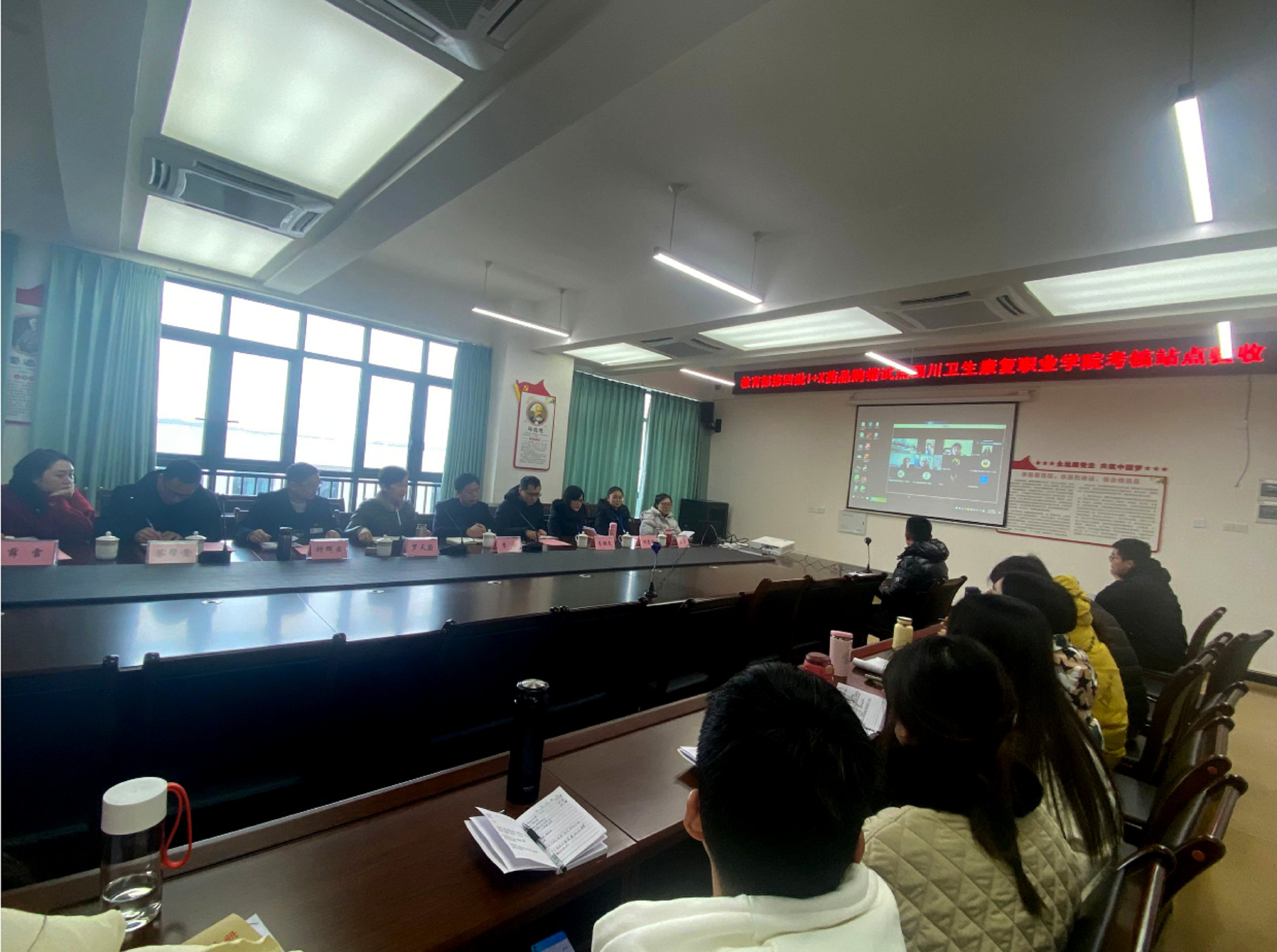 随后,钟辉云作了学院发展建设和教育部第四批1+X药品购销试点建设工作情况的汇报。会议通过直播形式对站点6个模块进行了现场验收,与会双方就站点建设、考场布置、资料准备等问题交换了意见。