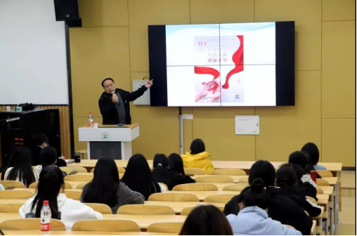 为增强青年大学生”知艾”“防艾”意识,更好关注自身和大众健康,12月1日下午,校团委在4教D401组织开展主题为“关注艾滋,关爱自己”的第三期“五老讲堂”活动。