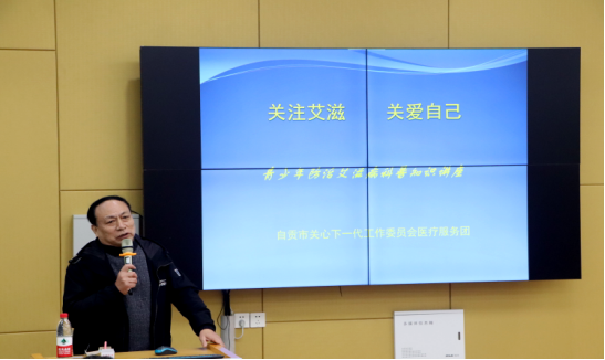 自贡市关工委医疗服务团副团长、原自贡疾控中心副主任刘敏重点结合自身多年抗“艾”斗争案例,让同学们清楚艾滋的危害和艾滋病人的生活现状,科学讲授了艾滋病法律法规依据、传播途径、预防措施、检测与治疗及人文关怀等,引导医学生坚持“生命至上”理念,更加关注艾滋,从做好自身防护做起,切实保障自身健康,更好地学习生活,为聚力再造产业自贡做贡献。