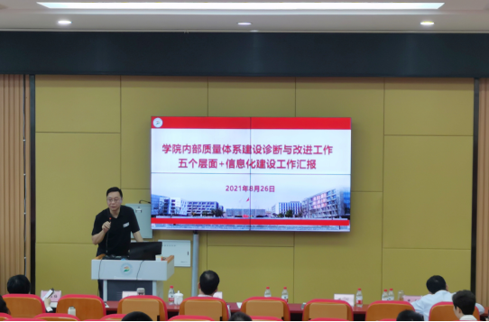 8月26日至27日,学院在1-B403进行了学校、专业、课程、教师、学生五个层面、信息化建设及6个专业、18门课程的诊改汇报,党委副书记李华,副院长熊骥、申奎、黄昌平、罗天蔚、章荣及全体中干、专业团队、课程团队成员参会。会议由质量管理办公室主任杜永红主持。