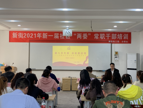 3月29日上午,学院党史宣讲团成员、思政部党支部副书记罗智凯在自流井区孵化园向新街街道社区“两委”常职干部讲授以“奋斗百年路,启航新征程——中国共产党百年奋斗历程与启示”为主题的党课。自贡市委组织部调研员张劲,自流井区新街党工委书记何嘉及社区“两委”常职党员干部共计40余人参加学习。