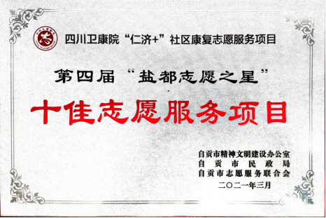 近日,学院康复系志愿服务团队积极参加自贡市精神文明建设办公室、自贡市民政局、自贡市志愿服务联合会联合开展的第四届“盐都志愿之星”评选活动,顺利通过层层审核遴选,荣获自贡市第四届“盐都志愿之星”十佳志愿服务项目。