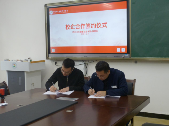 为加强校企合作、提高人才培养质量,康复系携手成都铃医健康科技有限公司、自贡市高新区南湖健身中心,共建“铃医脊科班”“运动康复”两个校企合作班。经过前期的筹备商榷,3月3日,学院副院长章荣代表学院与成都铃医健康科技有限公司、自贡市高新区南湖健身中心签订校企合作协议。