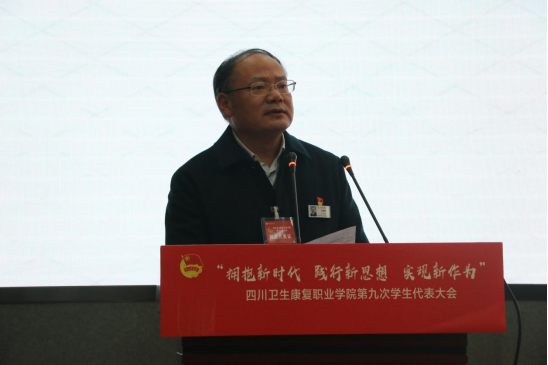 共青团自贡市委副书记兰斓代表团市委向大会的召开表示热烈的祝贺。她表示,学院的各项团学工作扎实推进,在参与自贡文化发展和城市建设中发挥了重要作用,希望学院团学工作再接再厉,再创佳绩。