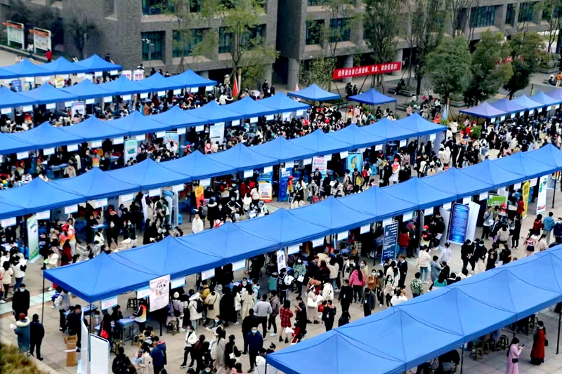 此次双选会医药卫生类用人单位占比95%以上,其中基层医药卫生机构占比80%以上,自贡市医药卫生机构占比50%左右,毕业生就业地域主要集中在川内和自贡地区,充分发挥了高校服务地方经济发展的职能,双选会用人单位数量和岗位数均达到历史新高。上午9时,会场已是人流如织,现场气氛热烈,毕业生怀揣着职业憧憬,积极与用人单位交流洽谈,许多大一大二的学生也来到现场,提前感受求职氛围,了解就业形势。本次双选会最终达成初步就业意向2500余人次。
