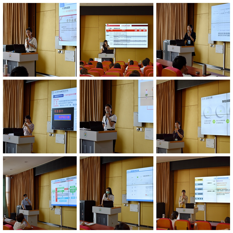 首轮汇报选取公共基础课2门、专业基础课1门、专业核心课6门,以汇报人展示、系部主任交叉点评方式开展。展示中,各门课程按照“事前设计组织、事中实施监控、事后诊断改进”的路径,着重介绍了课程诊改实施与运行中“目标标准——监测预警——诊断改进”三个基本环节。9门课程对诊改的认识还未完全统一,点评中各评委分别指出了问题并提出中肯建议,强调一是诊改的落脚点在“诊”和“改”两个层次,应充分利用SWOT分析对标找差,分析存在的问题,进而提出目标标准;二是诊改的重点是分析问题、改进进展与成效,而不是强调工作业绩、师生获奖等;三是课程诊改要厘清课程建设诊改、课程教学诊改两条主线,要清醒地认识课程目标从哪里来到哪里去、课程教学诊改的落脚点及如何有效监测与实施,切实实现课程教学从“静态规范”转向“持续改进”的目标。