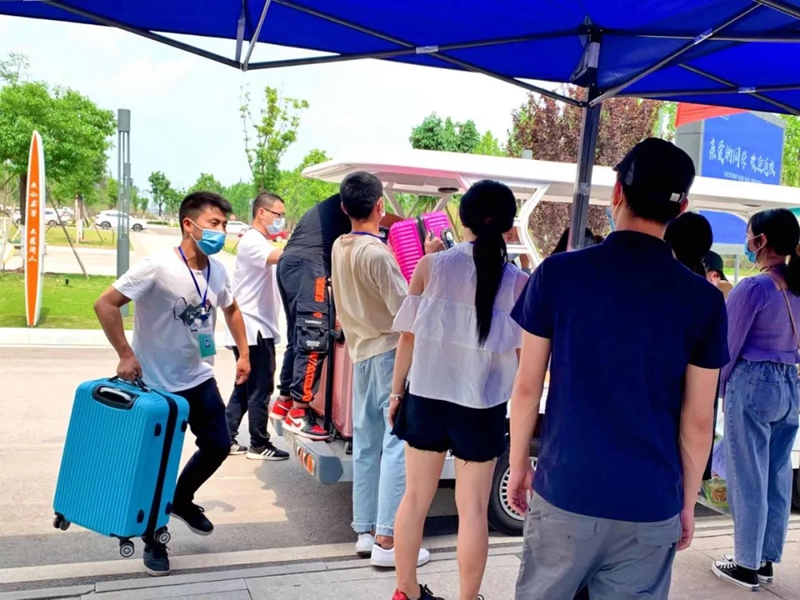 “行李太多怎么办?保安叔叔帮你扛!”“宿舍太远怎么办?摆渡车来帮你忙!”“有事务要咨询?教师驿站在每个宿舍院落!”一系列贴心服务,备受返校学子好评。