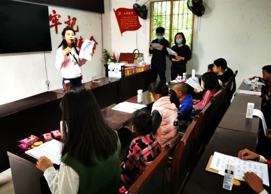 在普通话推广教学与辅导留守儿童功课中,人文社科部教师兰岚为留守儿童们解释了推广普通话的意义,并就中小学生易错的读音进行了辅导,重点讲解了自贡方言与普通话在发音上的区别,行政党支部党员志愿者引导孩子们进行了诵读;考虑到孩子们复课不久,教师们采用“一对一”的形式为他们辅导功课。