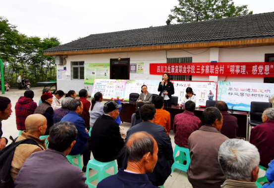 4月18日上午,学院与大安区三多寨联合村共同开展第一期“明事理 感党恩”专题感恩教育宣讲会。学院党委副书记、纪委书记李华带队,学院行政党支部党员志愿者、思政部与人文社科部专兼职教师,联合村两委成员、全体贫困户及留守儿童参与。本次宣讲活动由扶贫政策及现状宣讲、普通话推广教学、辅导留守儿童功课三部分组成。