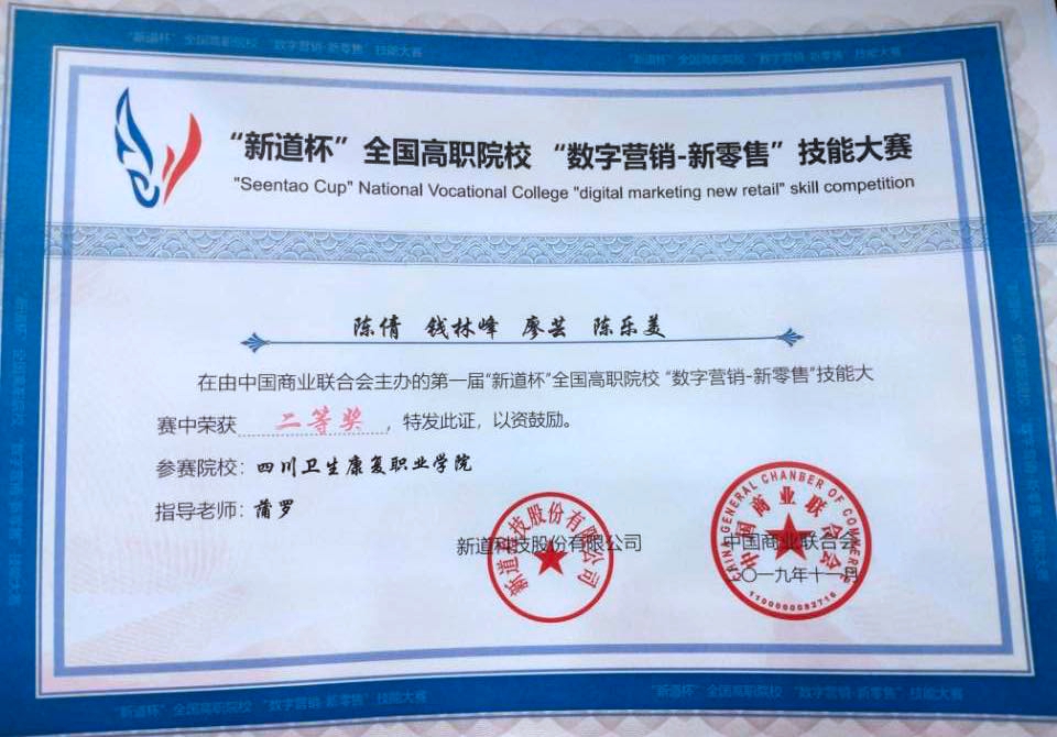 在刚刚结束的“新道杯”全国高职院校“数字营销—新零售”技能大赛中,taptap点点药学系2018年首届招生的新专业《药品经营与管理专业》二年级学生在全国54所高职院校中表现突出,荣获全国二等奖。