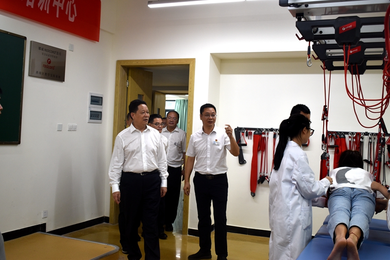 杨兴平一行首先乘坐观光车参观了taptap点点校园,观看了康复系实验实训建设、学生康复辅具展,听取了学院办学历史、新校区建设及教育教学工作情况详细汇报。当了解到学院今年录取的新生较去年增加近1000人,在校生人数达到9000人,招生人数和在校生人数均创历史新高时,杨兴平高度肯定学院一百年来为四川医学教育及在卫生健康事业中所做的贡献,鼓励学院加快新校区综合体项目建设,完善功能用房和配套设施,加快推进学院高质量发展,培养更多优秀医学人才,发挥医疗、教育综合优势,为健康四川、健康自贡建设作出更大贡献。