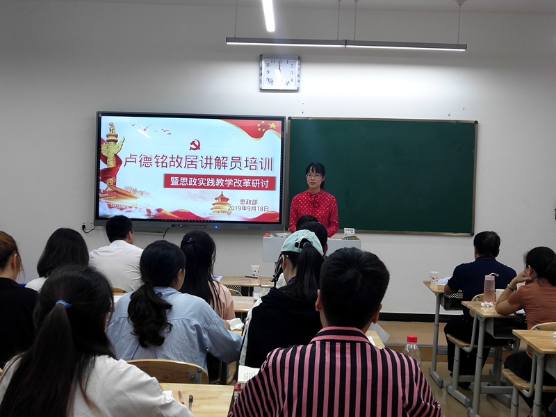 为进一步推进思政实践教学改革创新,9月18日,学院联合卢德铭故居开展“卢德铭故居讲解员培训—暨思政实践教学改革研讨”主题活动。学院副院长申奎、自贡市自流井区仲权镇副镇长郭丹倩、自贡市盐业历史博物馆宣教部主任李貌、思政部全体教师和学院部分学生共计35人参加。