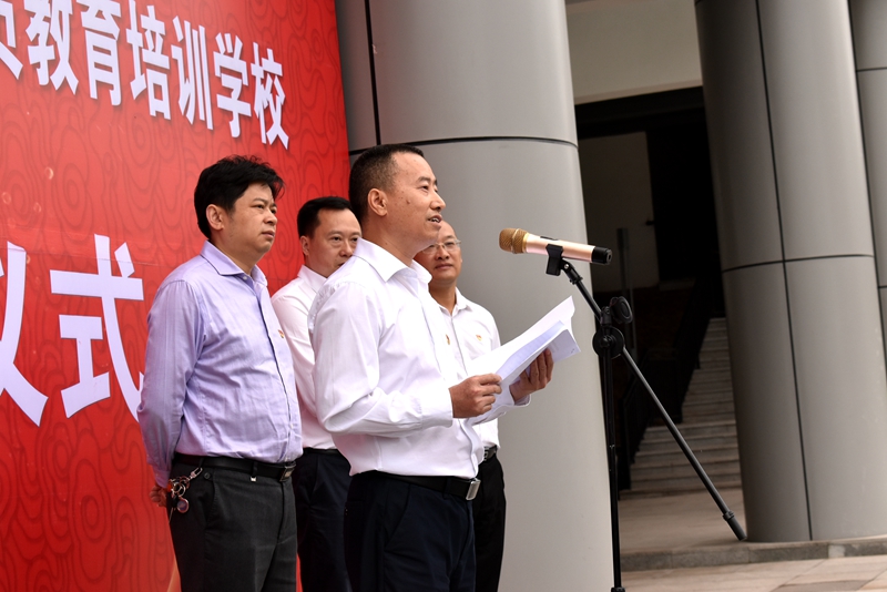 市卫生健康委机关党委书记文铭生主持仪式。市卫生健康委副主任缪皖川宣读了《关于成立自贡市卫生健康系统党员教育培训学校的通知》。