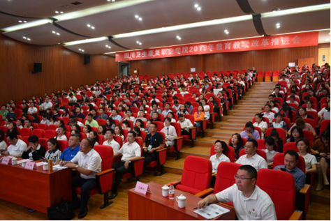 随后,学院党政领导班子成员、卫生康复职教集团成员单位代表、附属医院党委委员、附属医院相关部门负责人、学院全体教职工共计400余人参加了教育教学改革推进会。