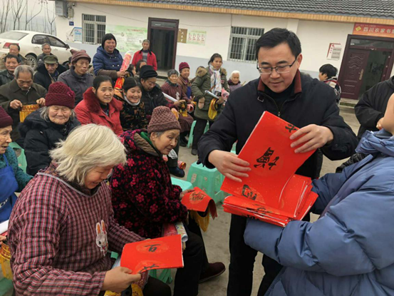 随后,学院团委副书记王庆带领学生志愿者摊开红纸,拿起毛笔,现场书写春联,为村民们送上了新年第一份美好的祝福。申奎现场为村民赠送灯笼、春联,现场活动气氛融洽。有几位贫困户因病没能到场参加活动,申奎一行到贫困户家里一一走访慰问,并帮助他们贴上春联,挂上灯笼。