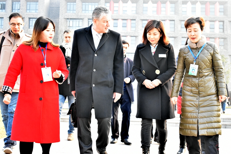学院党委副书记、纪委书记李华向HE Marc Vinck一行介绍了学院办学规模及发展情况,副院长罗天蔚详细介绍了学院承办的癫痫筛查培训项目的开展及实施方案。HE Marc Vinck在参观现场教学和新校区建设后,高度肯定了学院办学实力和在癫痫筛查培训方面所做的努力,对前期培训所取得的效果给予了肯定,并表示将继续大力支持学院乡村医生培训项目。