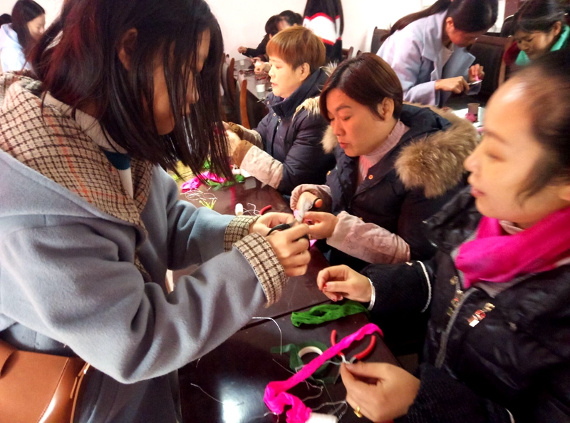 根据安排,手工社将选取丝网、针织等难度较低、简单易学且精美实用的手工教学内容连续四个星期为联合村开展农民夜校手工技能专业培训,帮助他们丰富业余生活的同时提升就业服务水平,从而增强产业致富的能力。