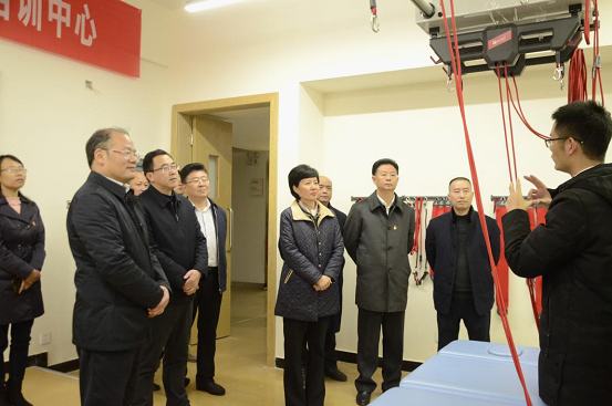 随后刘敏一行来到康复系,仔细查看学生作品和实训室建设,对学校依托康复成立西南EST康复培训中心给予了高度肯定。刘敏指出,学校党委要充分发挥高校党委的领航作用,抓住新校区搬迁后校园文化建设的契机,狠抓内涵建设,利用“一校两附院”的优势,努力培育更多优秀的医务人员,为健康自贡做出更大的贡献。
