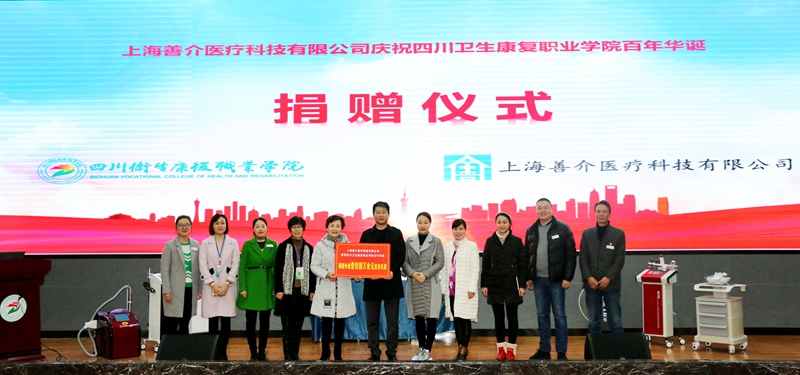 11月29日下午,上海善介医疗科技有限公司庆祝学院百年华诞捐赠仪式在3号楼C209顺利举行。上海善介医疗科技有限公司总经理何新励、副总经理缪倩、新媒体运营部主管张杨、平面设计师晁妮,学院副院长罗天蔚、学院相关部门负责人及医美专业学生代表参加了此次活动。护理系主任邹金梅主持捐赠仪式。