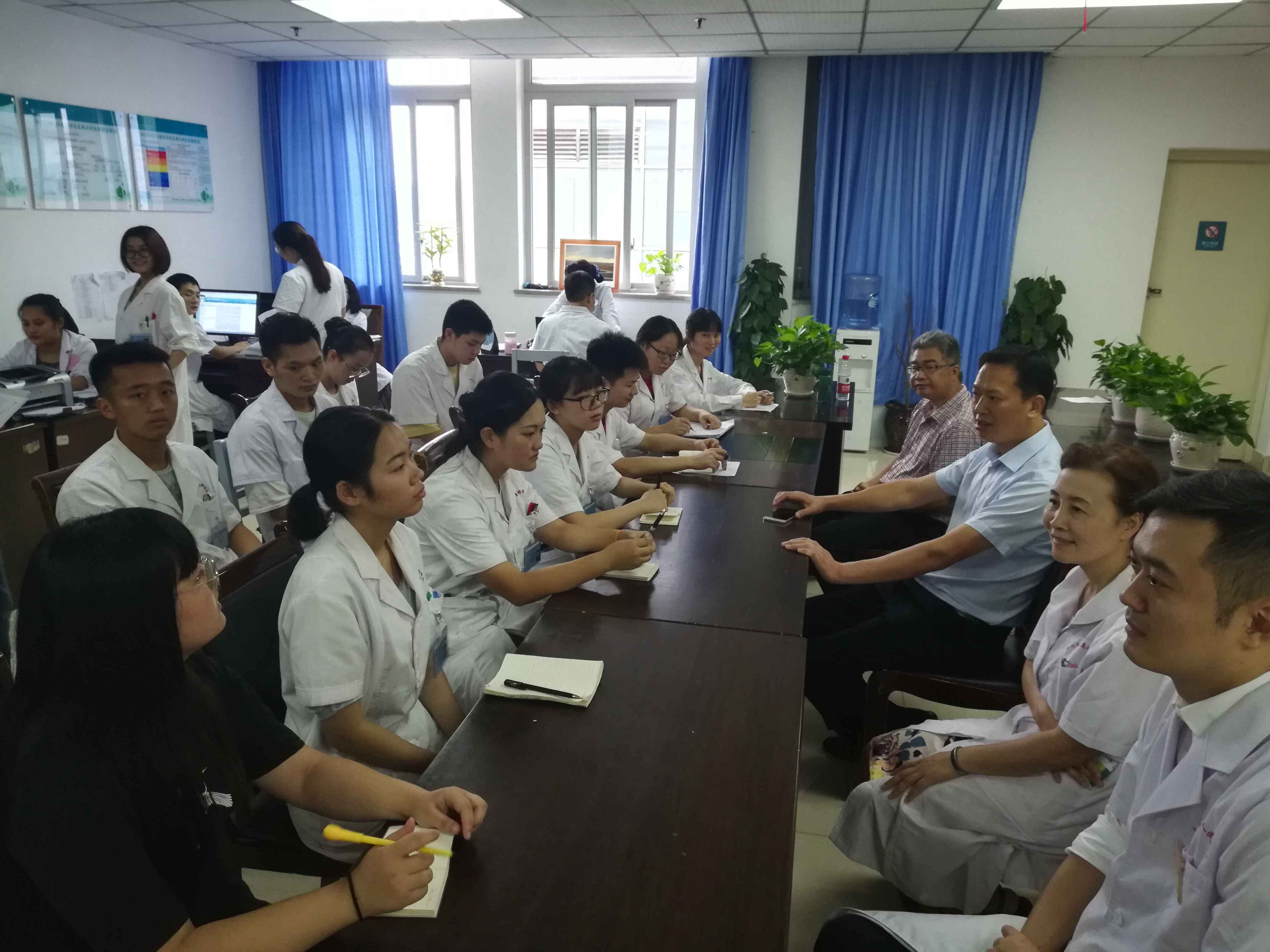 8月15日至16日午,学院副院长黄昌平、罗天蔚率检查组到附属一院、附属四院开展实习检查工作,并对教师暑期岗位体验情况进行抽查。招就处、人事处、系部、9+3管理老师及相关实习管理人员参加。